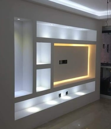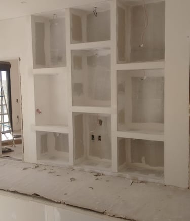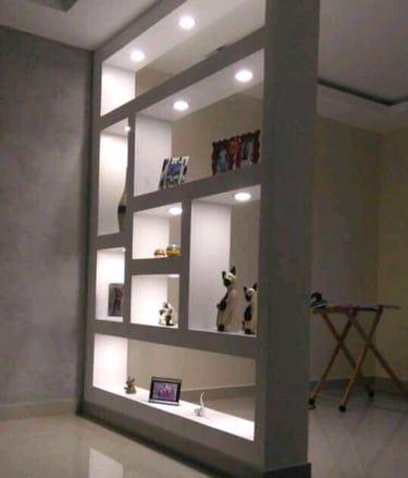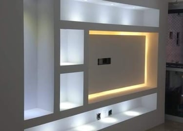 Divisórias e nichos de drywall oferecem praticidade e estilo, permitindo criar ambientes modernos, funcionais e bem aproveitados. Além disso, possibilitam projetos personalizados que valorizam cada detalhe do espaço